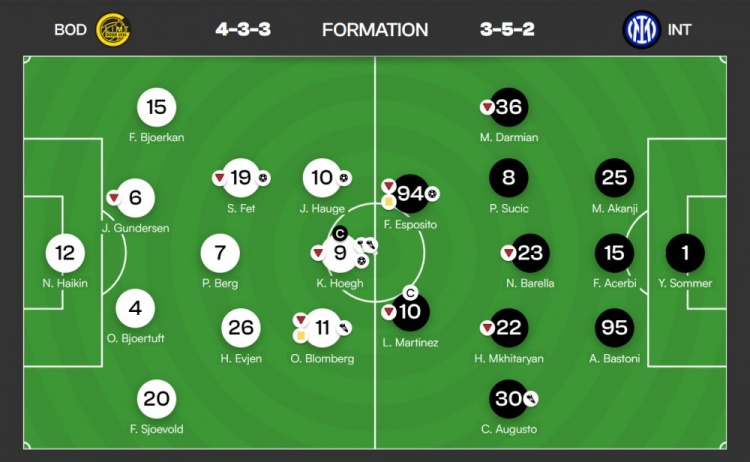 博德闪耀的欧战成名战,是2020年9月对AC米兰的遗憾失败(2-3)、及2021年欧协联小组赛那场6-1血洗罗马。那次大胜也让欧洲足坛第一次认真审视,这支来自北极圈的球队。之后他们的索尔巴肯,去到了穆帅麾下。接下来,米兰从他们手里买走了海于格。就是那个在今日对国米进球后说“在米兰期间没机会踢德比,现在破门感觉非常激动”的海于格。昔日,他是米兰很看好的一个小将,可惜,没有在圣西罗打出来名堂。不过,回归了本土他依旧很成功。